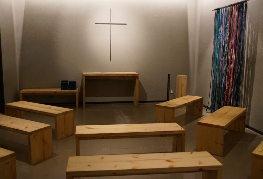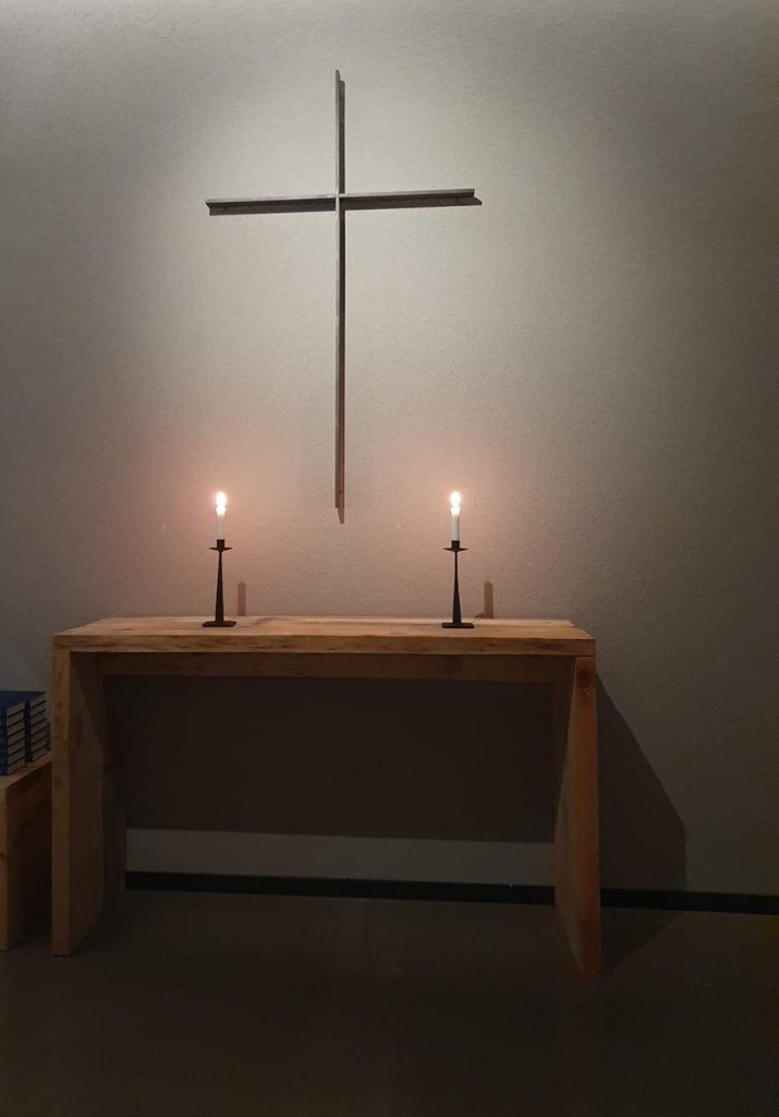 Vi har precis flyttat från vår kyrka på Ekersgatan till ett nytt modernt hus på Södra Ladugårdsängen. Från ett hus med sprickor i fasaden till en ny kyrka vars kapell har en spricka i golvet. Vet inte riktigt om det är Peab eller Gud som orsakat den, men de som bestämt i byggprocessen har i alla fall valt att ha sprickan kvar och förtjänstfullt lagt glitter i den.