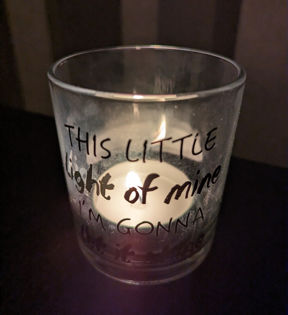 Det finns säkerligen många olika tolkningar av vad texten betyder men jag tänker att om jag var ljuset som sattes under skäppan så är det som att jag skulle förminska mig själv, att jag helt enkelt inte lyser i min fulla potential. Det är inte meningen att vi ska dölja de vi är utan tanken är att vi ska lysa klart, och vi ska inte heller låta andra människors åsikter släcka vårt ljus. Tänker att orden ”frestaren ville blåsa ut, men det ska få lysa klart” är en viktig påminnelse om det. Om vi kan bortse från de människor som försöker blåsa ut vår livslåga kommer livet bli lättare att leva, men det är inte så lätt att göra det.