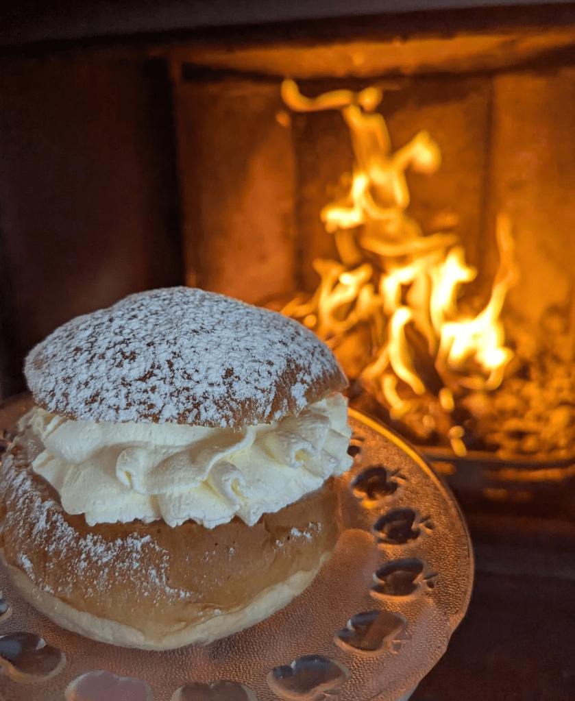 Häromdagen publicerade jag denna bild på Instagram med texten ”Ibland måste man unna sig och jag skulle egentligen inte äta någon semla förrän på fettisdagen. Men detta är ju inte en vanlig semla utan en Finnerödja semla (grädde, vaniljkräm, mandelmassa).