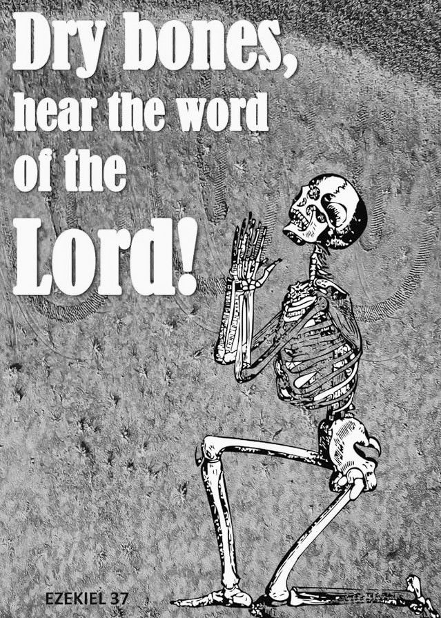 Kan inte heller låta bli att tänka på den märkliga och fascinerande texten i Hesekiel 37 om de förtorkade benen som får liv. Den påminner oss om att inget är för dött eller förlorat för att Gud ska kunna blåsa in nytt liv.