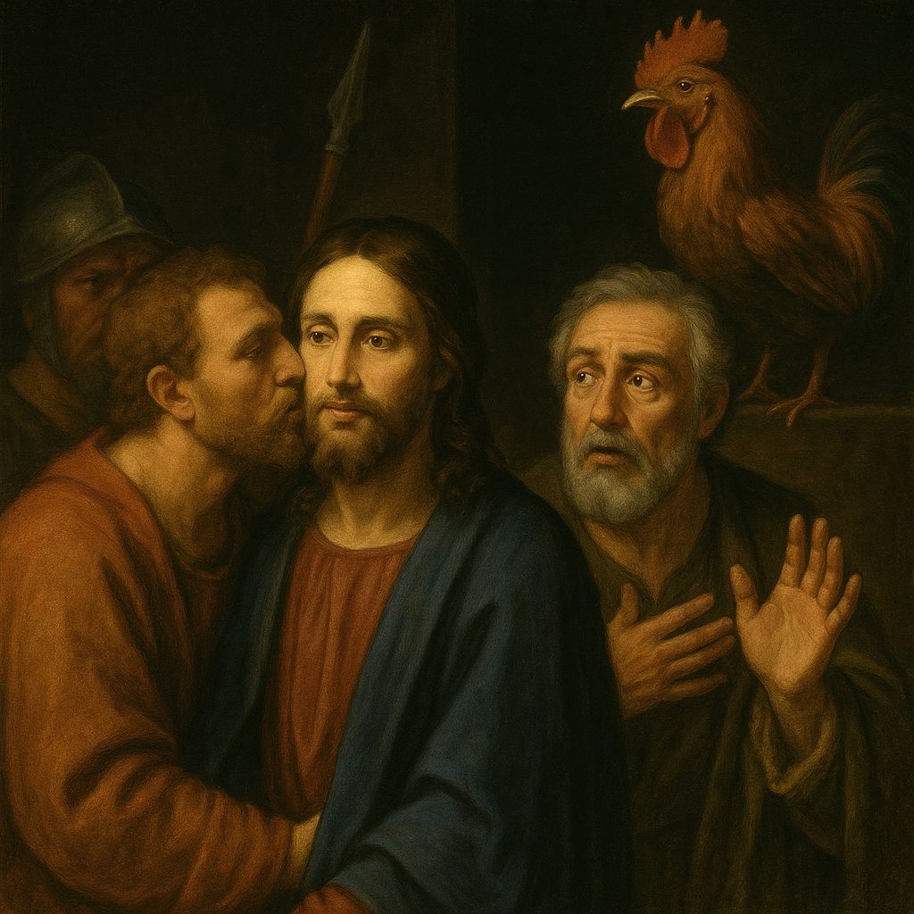 Bara några timmar senare stod Petrus, kanske den mest hängivna av lärjungarna på en gårdsplan och låtsades som att han aldrig känt Jesus. ”Jag känner honom inte” sa han, inte bara en gång utan tre. Han som sa att han skulle gå i döden för sin mästare, svek också. Inte med en kyss, utan med lögner.
