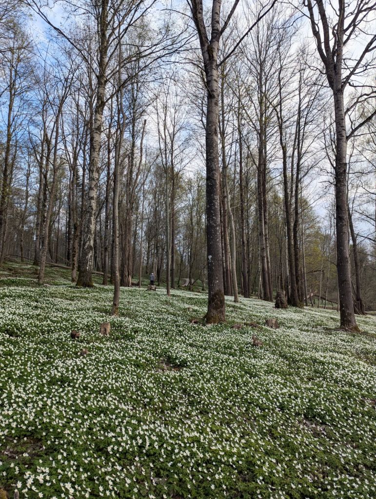 En dag är marken bara brun och kal. Nästa dag har skogen fått ett skimmer av vitt, små vita stjärnor som breder ut sig över den vårgröna marken.