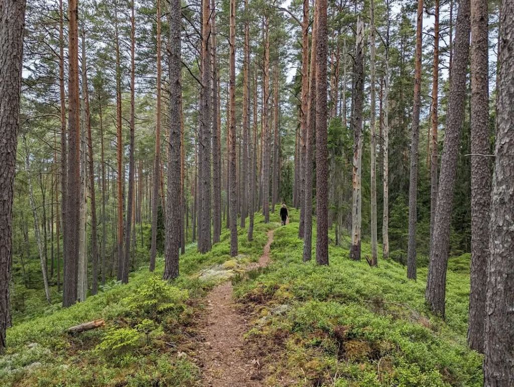 Stigen kräver närvaro, man behöver vara medveten om vart man sätter foten. Det går liksom inte att rusa fram genom skogen som man gör genom en shoppingrunda, en tv-kväll med fjärrkontrollen i hand eller ett flöde på sociala medier. Skogen låter sig inte stressas. Den svarar på uppmärksamhet, inte på brådska.