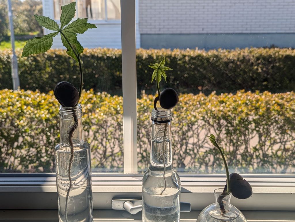 Varje vår, när glasflaskorna står där i fönstret med sina mirakel blir det tydligt att växande inte handlar om tempo, utan om riktning. Nedåt. Uppåt. Framåt. Och om modet att börja, även när det enda man är liknar en liten oansenlig kastanj.